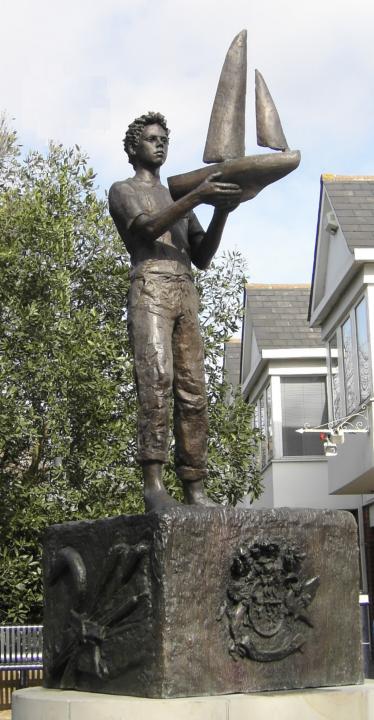 (far left) "The Boy with the Boat" - Lydia Karpinska's sculpture recently restored to its plinth