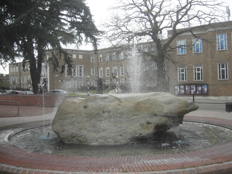 (far left) The fountain outside Maidenhead Library with the Town Hall in the background.